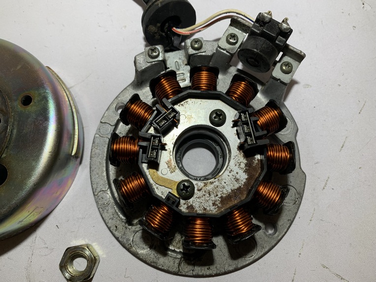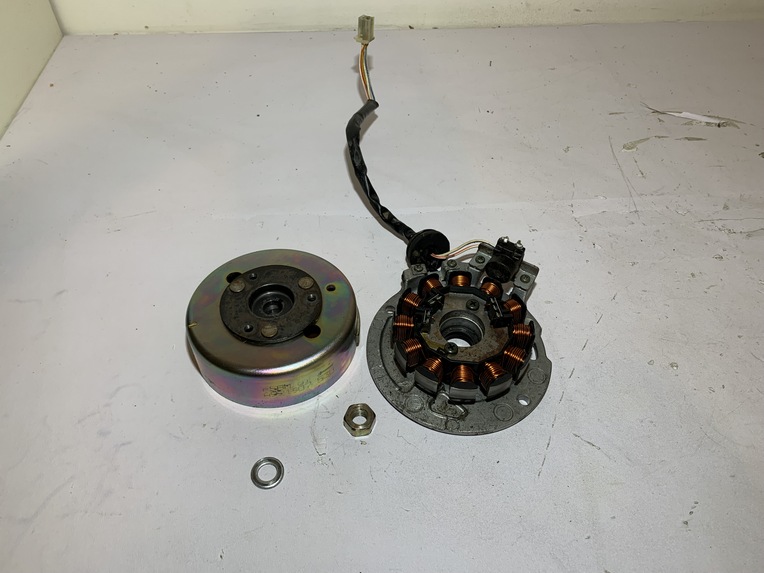 allumage origine mbk nitro / ovetto 50 2t pièce en bon état aucune partie de cassée ou de fissurée stator, câble et cosse ok platine ok nombre de bobine : 12 rotor ok origine yamaha ANNEE / 03/04/2007 KLM / 10351 klm MODEL / nitro - ovetto 50cc 2t