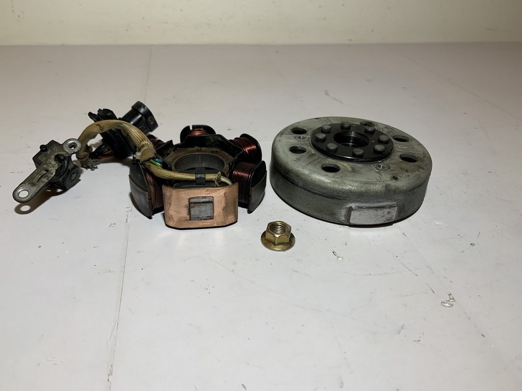 allumage origine piaggio zip 2t pièce en bon état aucune partie de cassée ou de fissurée point de fixation ok stator fil et cosse ok nombre de fiche : 6 rotor aucun poque quelques rayures sur l'intérieur (voir photo) allumage fonctionnel origine piaggio ANNEE / 2009 KLM / 14278 klm MODEL / zip - typhoon - nrg - stalker 50cc 2t