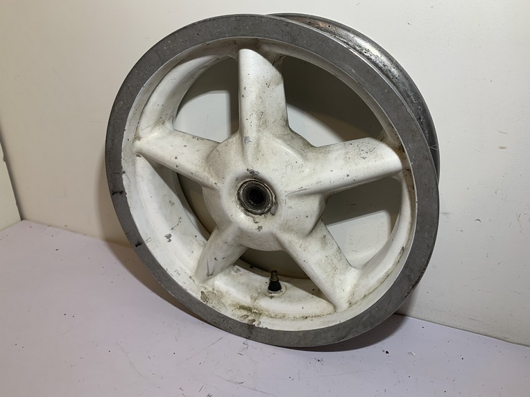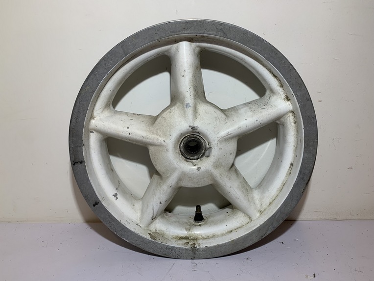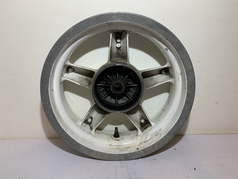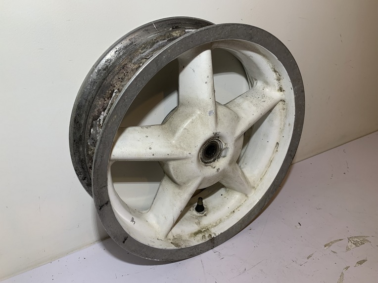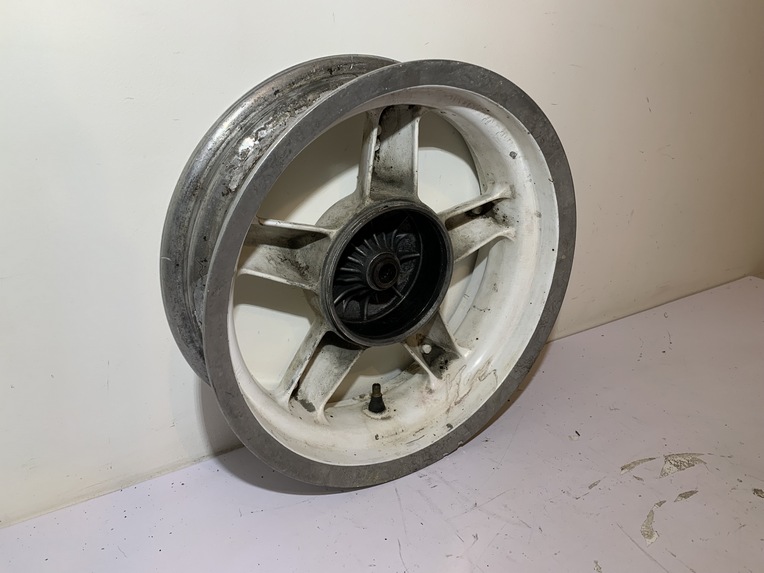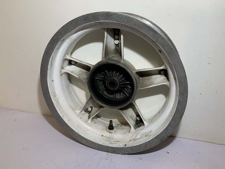 jante arrière mbk stunt / booster 12 pouces pièce en assez bon état aucune partie de cassée ou de fissurée quelques accros (voir photo) cannelures ok jante non voilée origine mbk MODEL / booster - stunt - rocket 50cc 2t MARQUE / grimeca