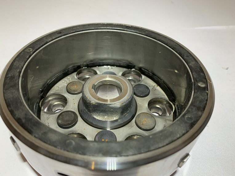 rotor d'allumage yamaha tmax 500 (2004 - 2007) pièce en bon état aucune partie de cassée ou de fissurée point de fixation ok aiment ok quelques poques (voir photo) ne gène en rien a son fonctionnement origine yamaha ANNEE / 16/03/2007 KLM / 47104 klm MODEL / tmax 500 2004 - 2007