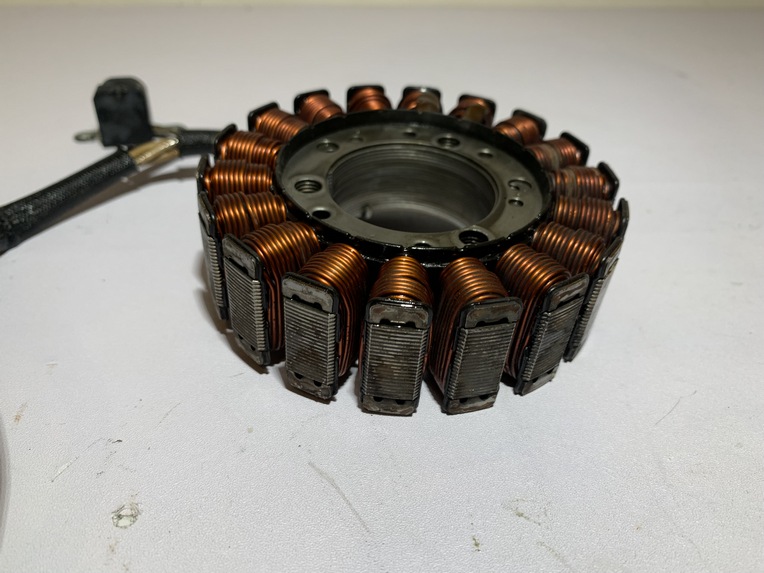 stator d'allumage yamaha tmax 500 (2004 - 2007) pièce en bon état aucune partie de cassée ou de fissurée point de fixation ok capteur ok fil et cosse ok nombre de pole : 18 origine yamaha ANNEE / 16/03/2007 KLM / 47104 klm MODEL / tmax 500 2004 - 2007