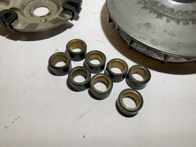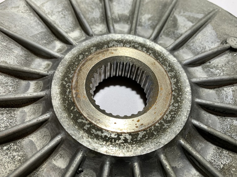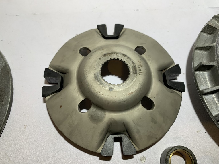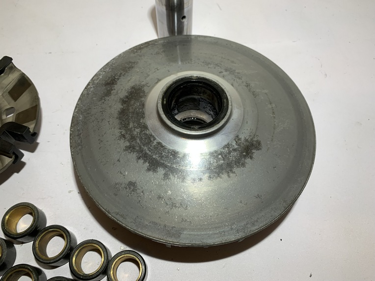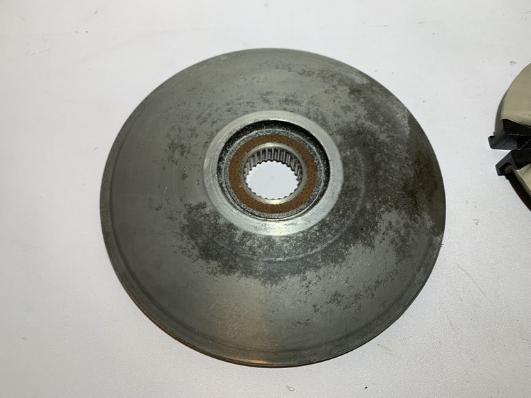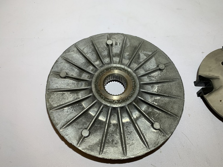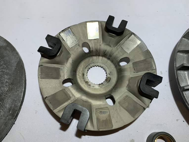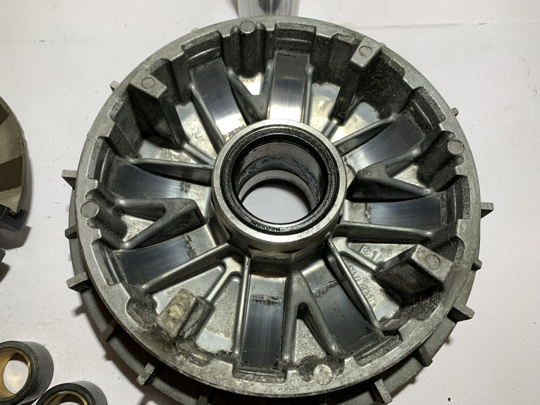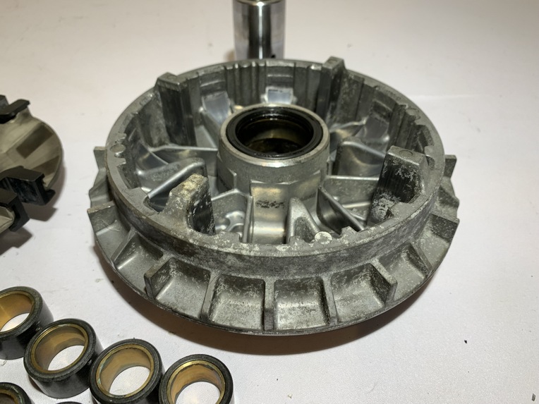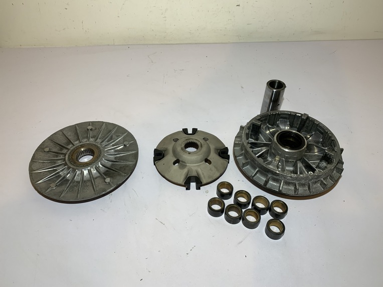 variateur yamaha tmax 500 (2001 - 2007) pièce en bon état aucune partie de cassée ou de fissurée joue fixe ailettes et cannelures ok variateur et canon ok flasque , guide plastique et cannelures ok galet 19 gr origine yamaha ANNEE / 16/03/2007 KLM / 47104 klm MODEL / tmax 500 2001 - 2007